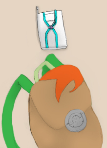 Reppu jossa: poke ballx5, great ballx5, ultra ballx3, love ball, potionx10, päiväkirja, lompakko, avaimet, pokegear (tavarat vaihtuvat/siirtää joskus taskuihin.)