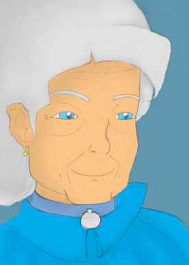 - Rikan isoäiti on aina ollut pieni nainen (148cm), mutta vanhuus on tuntunut painaneen tätä hieman lisää kasaan. Vaikka Chio saattaa olla jo elämänsä ehtoollis puolella tämä nauttii ulkoilusta paksun ja erikoisesti veistetyn puisen kävelykeppinsä kanssa, vaikkakin kymmenin minuutin kävelyyn kuluu tältä helposti tuplaten. Chiolla on paksut ja pitkät hiukset, jotka tämä kietoo päänsä päälle turbaanimaisesti. Vanhuuteen kuuluen myös Chion kuulo ja näkö valehtelevat joskus. Ikäänsä nähden tämä on kuitenkin erikoisen terävä ja hyvässä kunnossa.