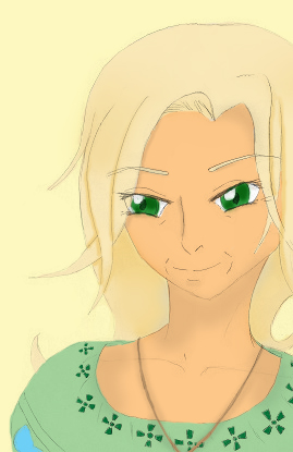Sunlflora (naaras)/ Shine "kukkanen" - Shine on juuri se joka lohduttaa alakuloista kulkijaa, jopa pakkomielteeksi asti tämän on nähtävä iloinen hymy toisen kasvoilta.Shine auttaa mielellään avun tarvitsijoita, vaikka samalla tämä on hieman kömpelö. Shinen mielipuuhaa on auringon ottaminen, sekä Dahlian auttaminen puutarhassa, joka on pääasiassa tämän asuinpaikka talossa.